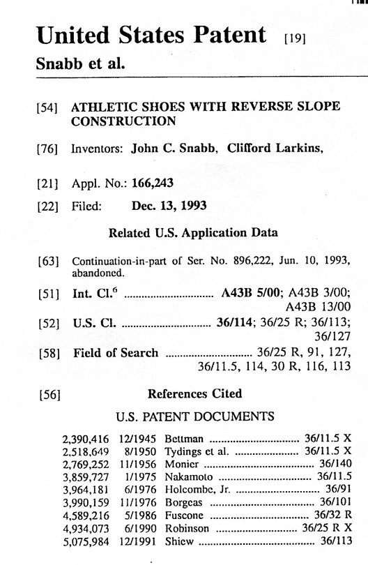 New application of biomechanical principles of elastic stretch and braking force are combined in an athletic shoe. The new design implements the concepts by placing the heel significantly lower that the ball of the foot and toes. Tests show that an inner sole reverse slope of about 3 1/2" provides an optimum significant improvement in jumping in particular. The reverse slope is substantially flat from the center of pressure beneath the heel to the five centers of pressure beneath the ball of the foot. The flat slope provides more assurance the weight of the user will be applied to the shoe through the centers of pressure in preference to locations under the arch. The invention is applicable to "explosive" movement sports such as basketball, track and field, volleyball, tennis and soccer. Preferably the shoes are constructed with formed or curved heels to retain the feet properly positioned in the shoes by preventing the feet from sliding too far back within the shoes. The increased athletic performance appears to arise from a two fold effect. First, the reverse slope because of the toe elevation additionally stretches the Achilles tendon resulting in the ability to generate greater jumping force as the calf muscle contracts. Second, the reverse slope because of the continuous flat nature of the slope, provides a greater stopping or braking force, thus improving the ability to convert forward momentum into vertical or lateral motion.